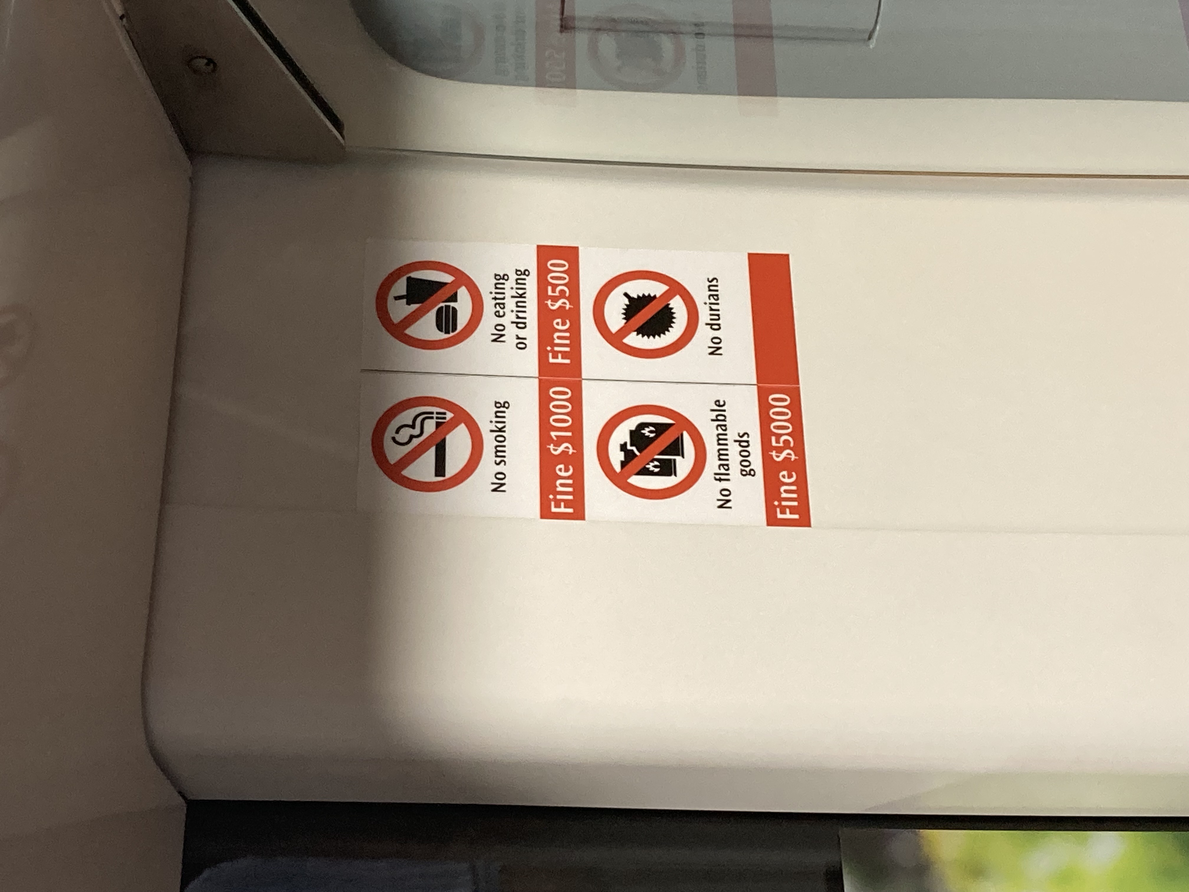 ちなみに、ドリアンの電車への持ち込み禁止が有名ですが、あれは罰金別に取られないみたいです。