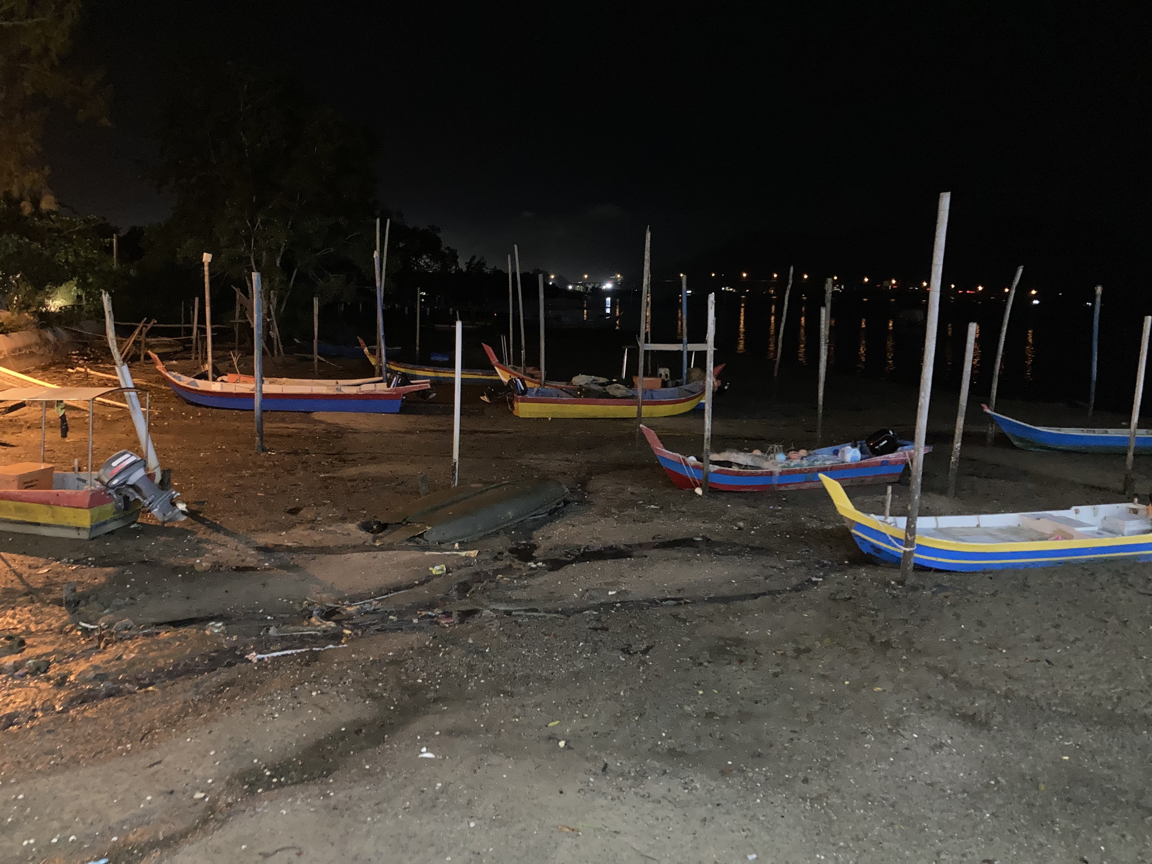 暗くてよく分かりませんでしたが、釣り用の小屋がいくつか川に浮かんでいるそうです。