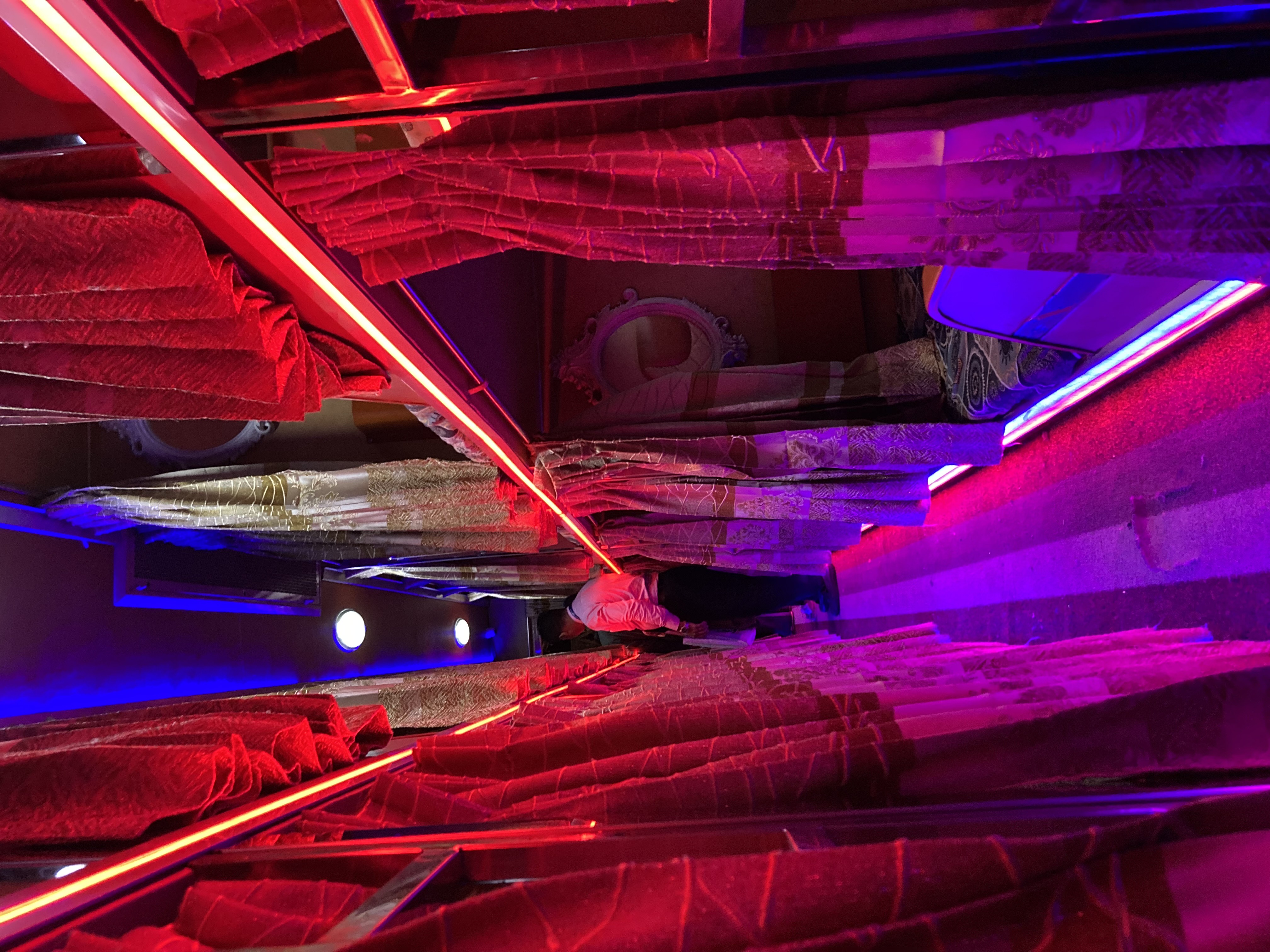 そのあとは三輪タクシー使ってバスの乗り場まで行来ました。なんか、コルカタ行きの夜行バスに乗り込みました。